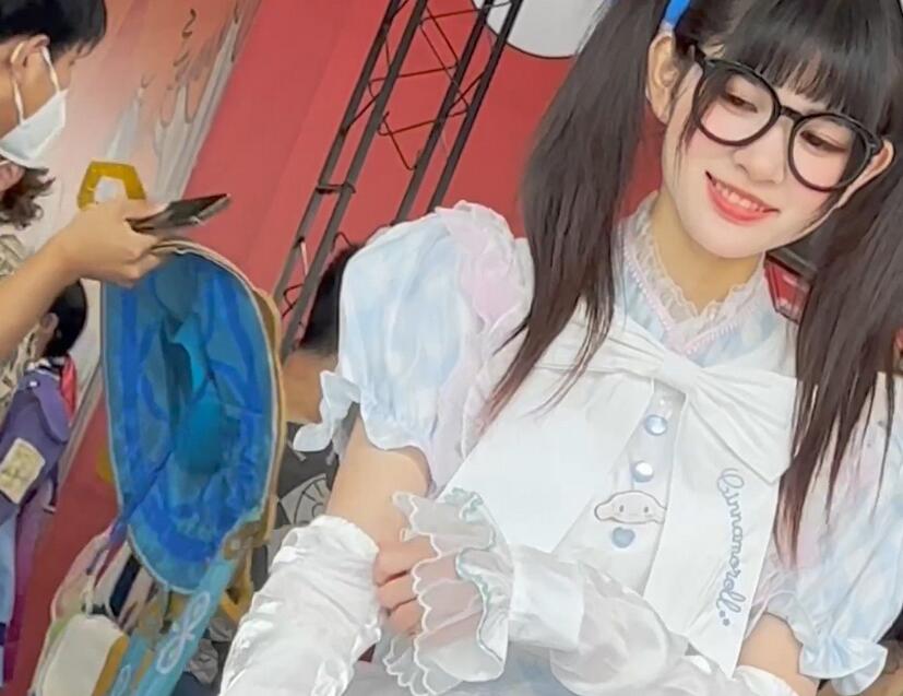 【KFC】学生妹和男友逛街·厚披风里面藏着性感短裙·微透白内